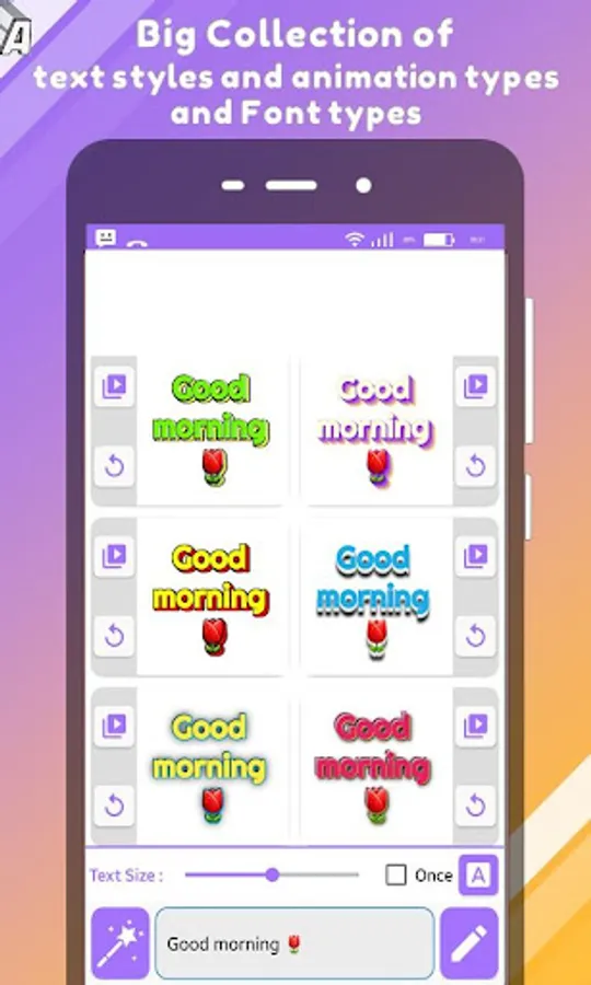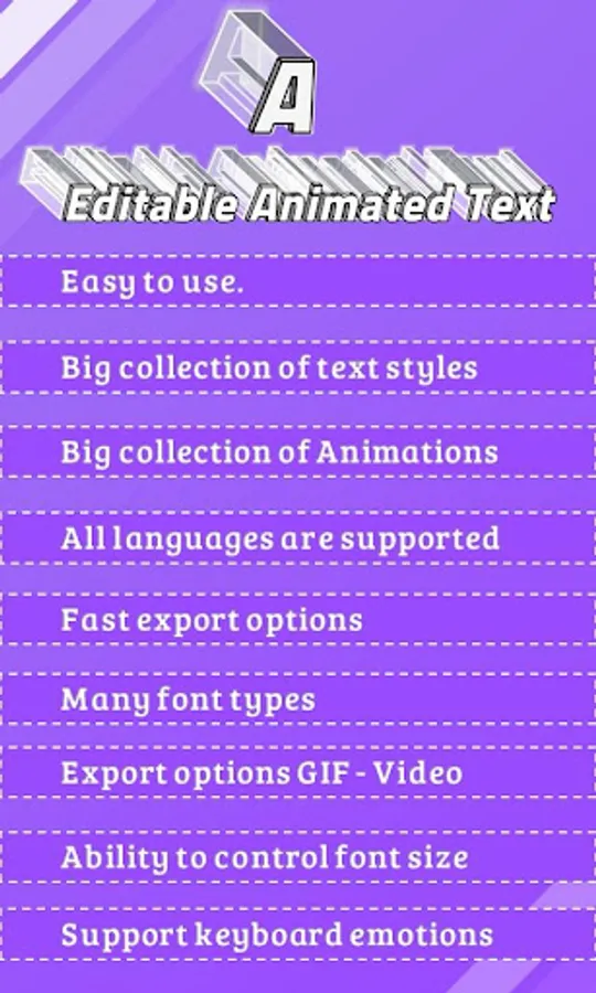 This app is a Gif - Video text animator and you can convert it to a Gif or video .This app is a video text creator because it convert the text animation to a video .