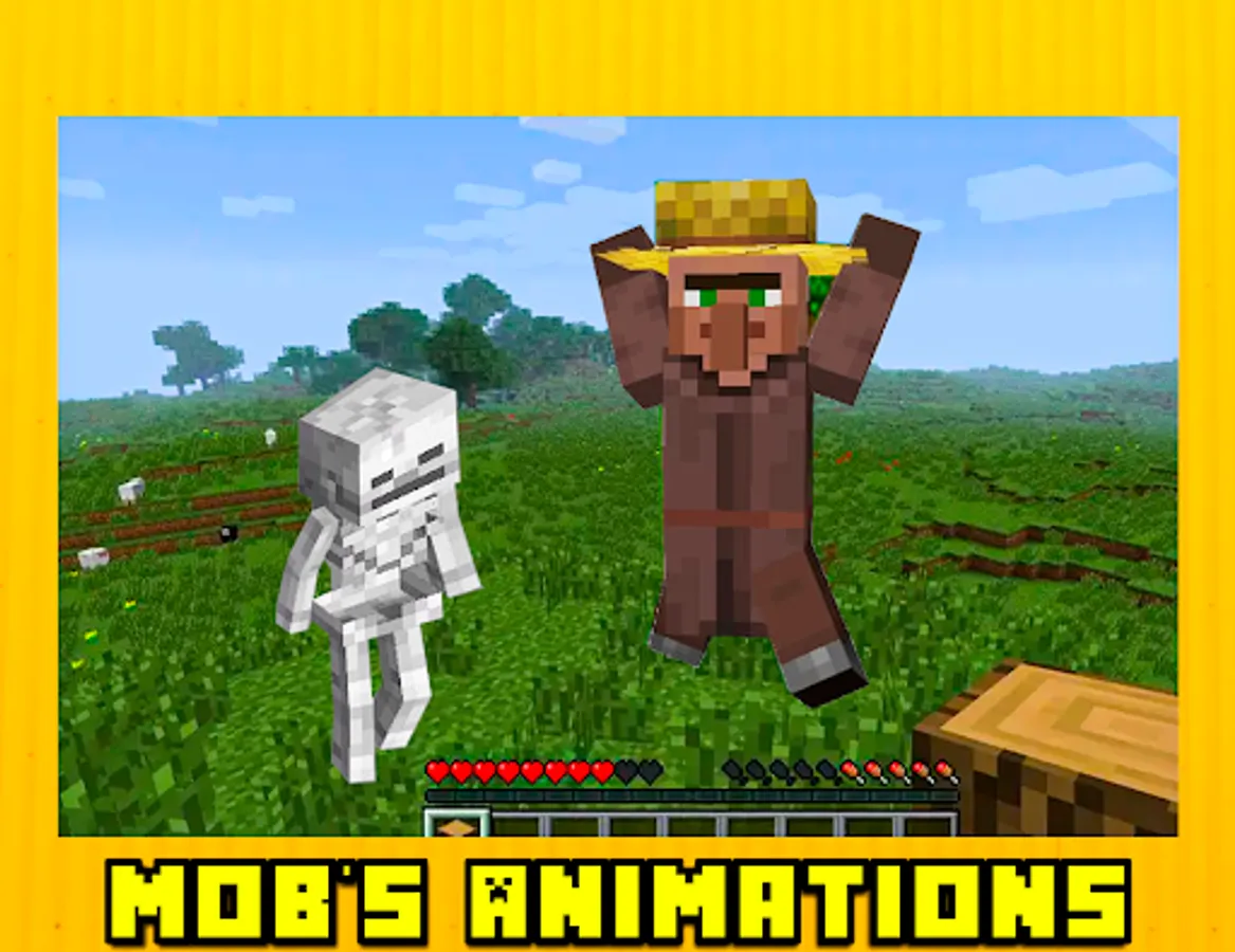 Mob Animations Mods for Minecraft PE adds advanced animations to your pixel world. New behaviors for mobs, improved appearance - all this complements our mcpe survival addons.