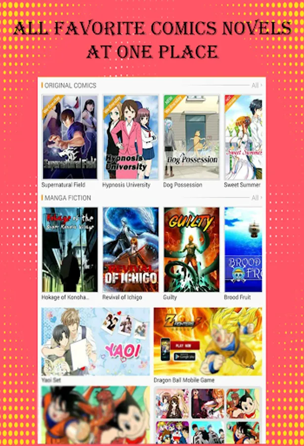 Manga Anime Comic reader is a free app for reading comics, manhua, manhwa & manga. All the comics are colorful. Different comics in Action, Romance, Boys' love, Yaoi, Comedy, Horror and more, are updated daily.