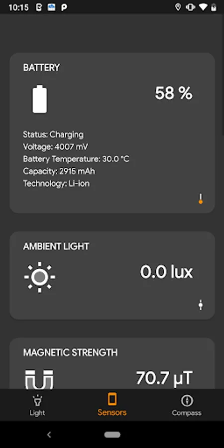 Simple and beautiful app which has flashlight, sensors measurements and compass.