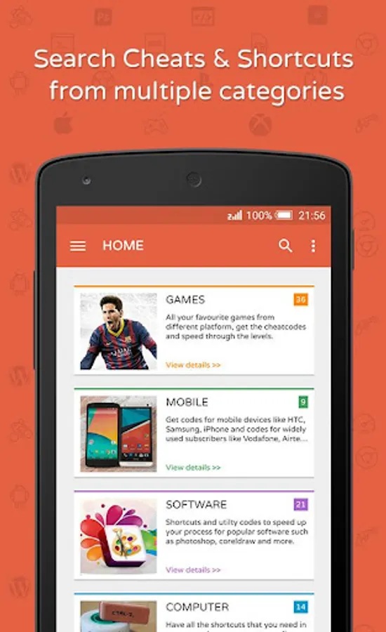 - BROWSE over 100+ categories for your favorite cheat codes & shortcuts.