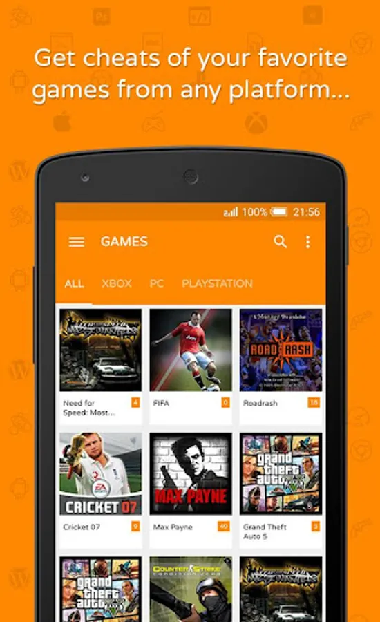 - Get GAMING cheats from multiple platforms such as xBox, Playstation, PC games and more.