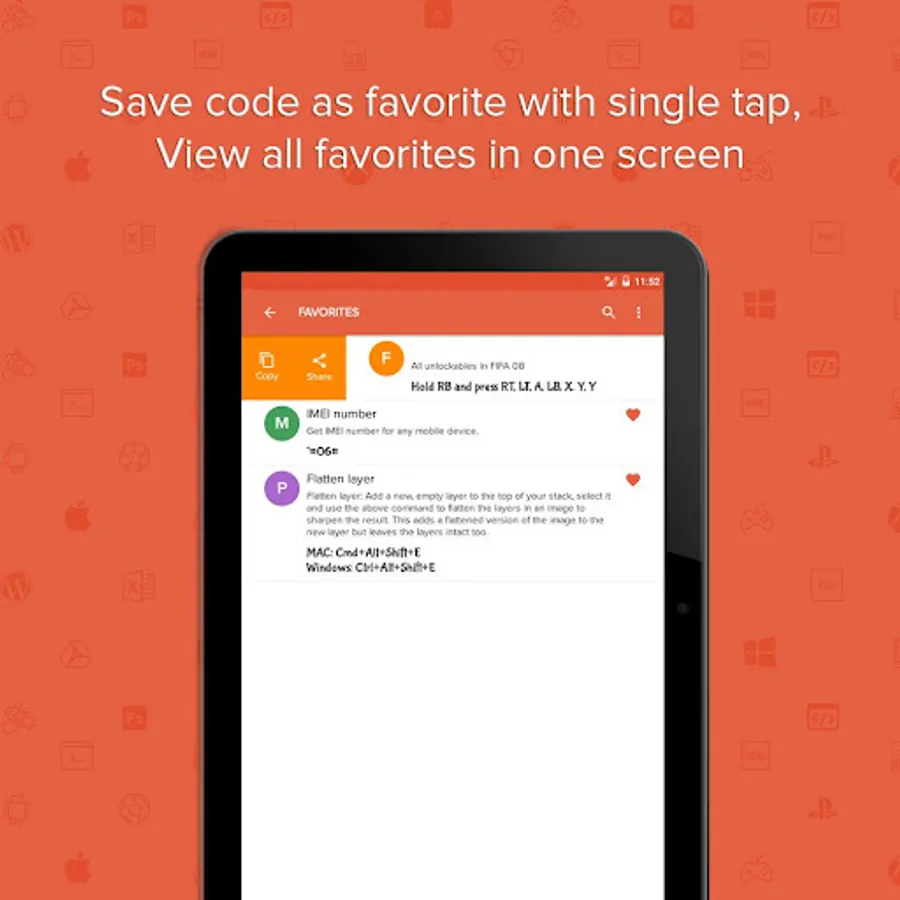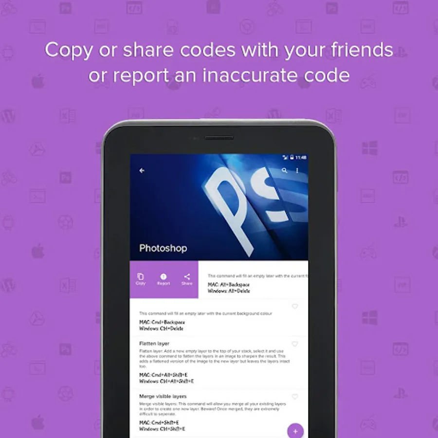 - SHARE the codes with your friends with a single touch. Share on social media, whatsapp or any other social apps.