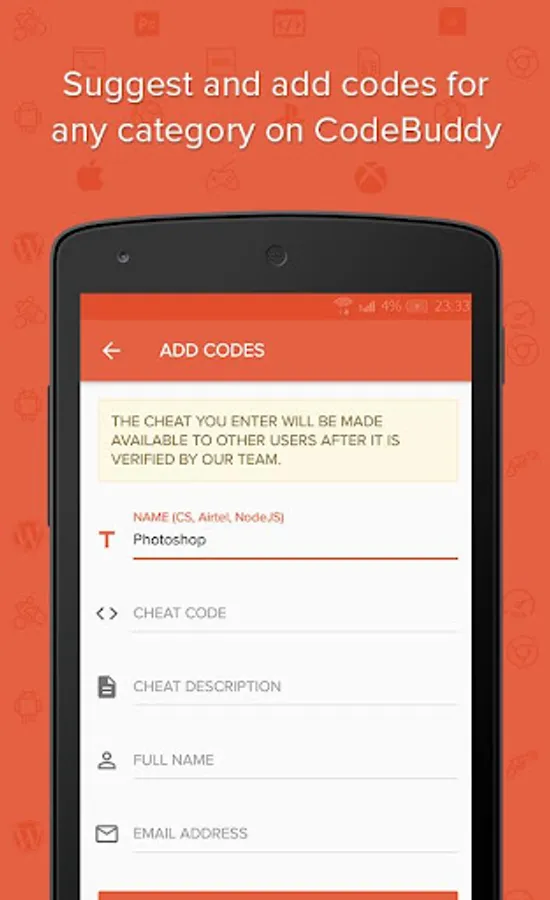 Additionally, you can submit cheats and codes for any category within the app. CodeBuddy team will verify your submission and update it on app. Search, browse and share Cheats & Codes with your friends with easy sharing feature.