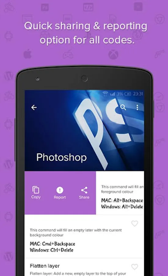 - Get SOFTWARE shortcuts such as codes from Photoshop, Sublime Text, Evernote, Visual Studio, etc.