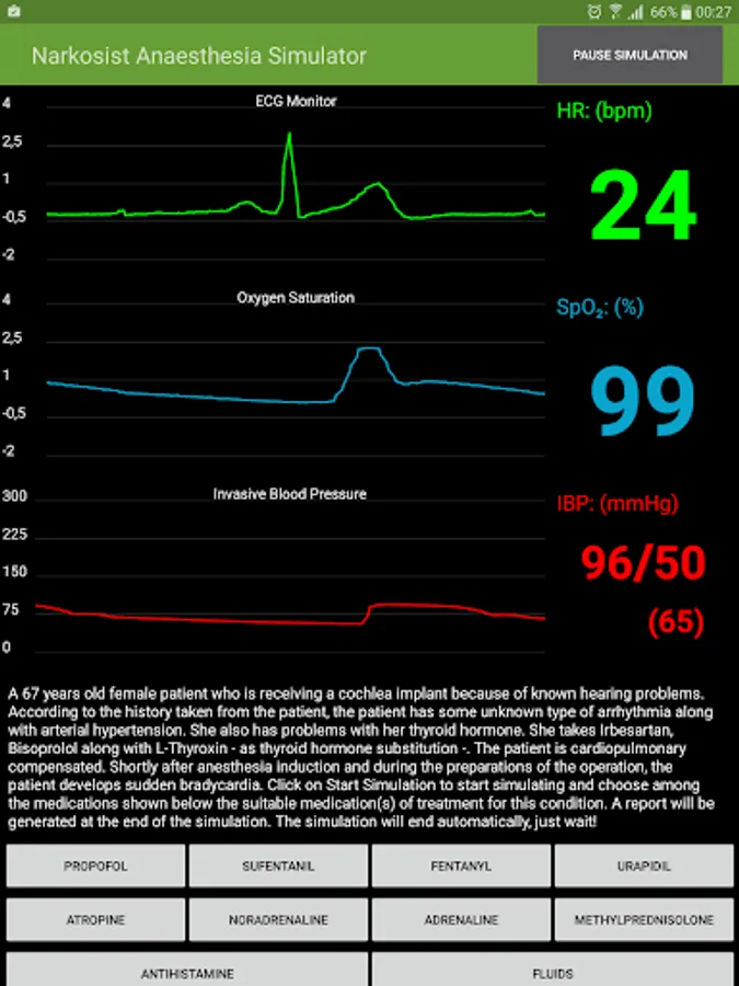 Use the built-in Anesthesia simulator to simulate some of the commonly seen cases during anaesthesia. It helps students as well as anesthesia residents, especially those beginning the career, to understand some key aspects in these cases.