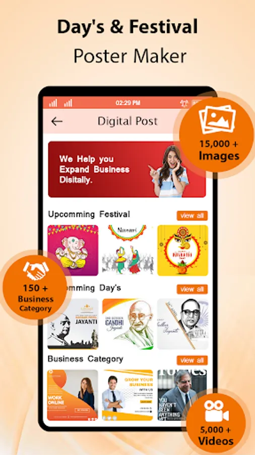 We design the best posts for social media platform. We will add daily festivals, quotes, birthday, Days celebration images, marketing banner in our app so all business or company can promote their business with the festival images on social media throughout the year. Our high-quality social media post design will help your business to appear different on any platform.