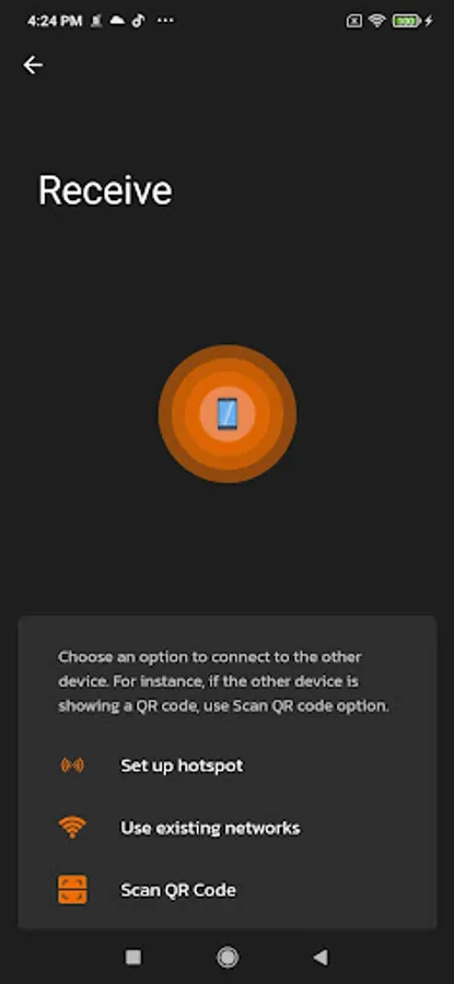 - If two devices are on the same network use Wi-Fi QR code for receiving files or else both devices are on a different network then use the Hotspot QR scan for receiving files.