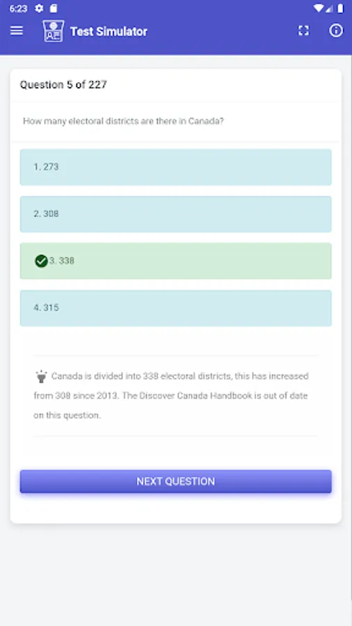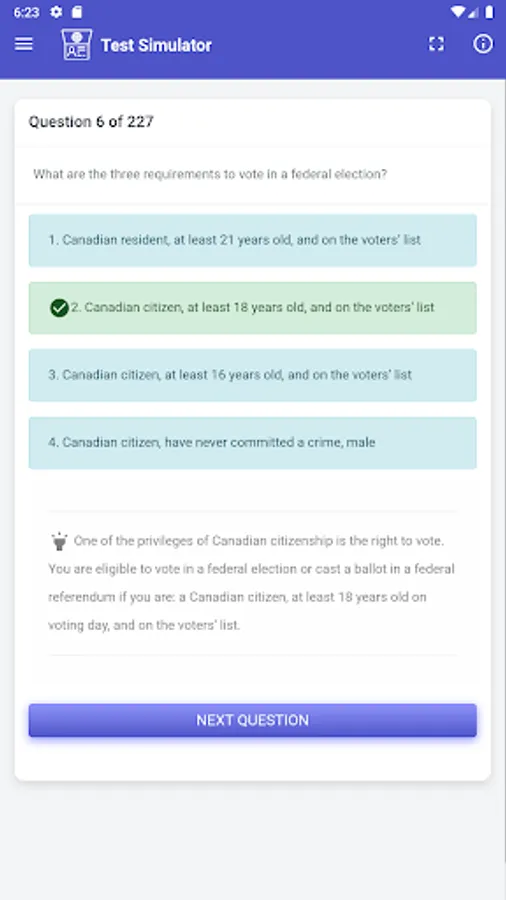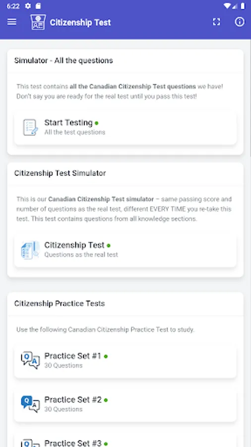 Our app is developed in a fashion that makes learning simple and direct with questions that are written based on the official Discover Canada. You will be able to concentrate entirely on learning from the questions efficiently since the interface is uncomplicated and there are NO ADVERTISEMENTS featured at all!