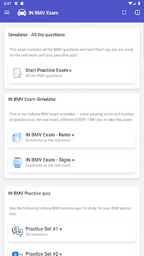 Do you want to pass the Indiana BMV Exam? This app can make you learn easily and precisely. Just install and start using it right away with no registration or internet connection needed! It makes learning efficient for you as you can learn it anywhere with just your mobile device!