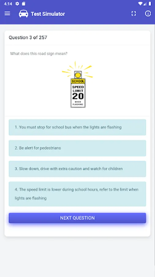 Our app is developed in a fashion that makes learning simple and direct with questions that are written based on the official Driver's Handbook. You will be able to concentrate entirely on learning from the questions efficiently since the interface is uncomplicated and there are NO ADVERTISEMENTS featured at all!