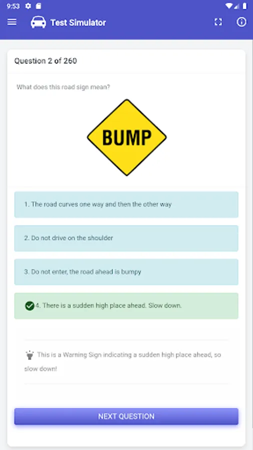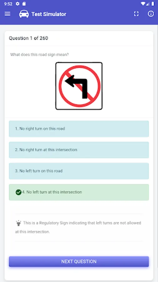 Our app is developed in a fashion that makes learning simple and direct with questions that are written based on the official Driver's Handbook. You will be able to concentrate entirely on learning from the questions efficiently since the interface is uncomplicated and there are NO ADVERTISEMENTS featured at all!