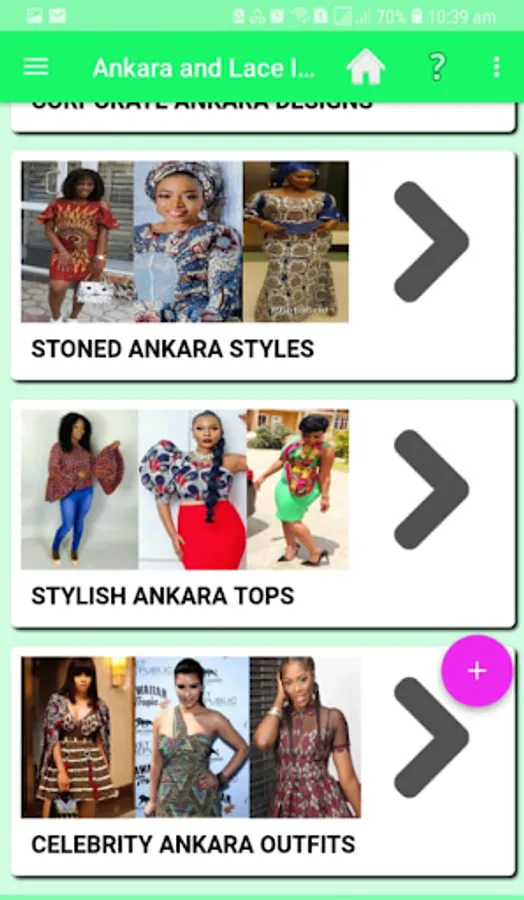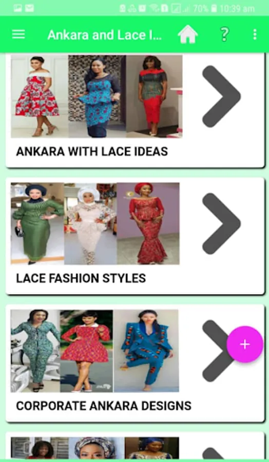 This App is has the largest pool of African Ankara and Lace designs which you can choose from! Simply download and enjoy the glamorous looks you have always desired. Some of the categories in the app include;
