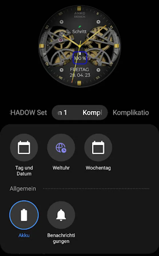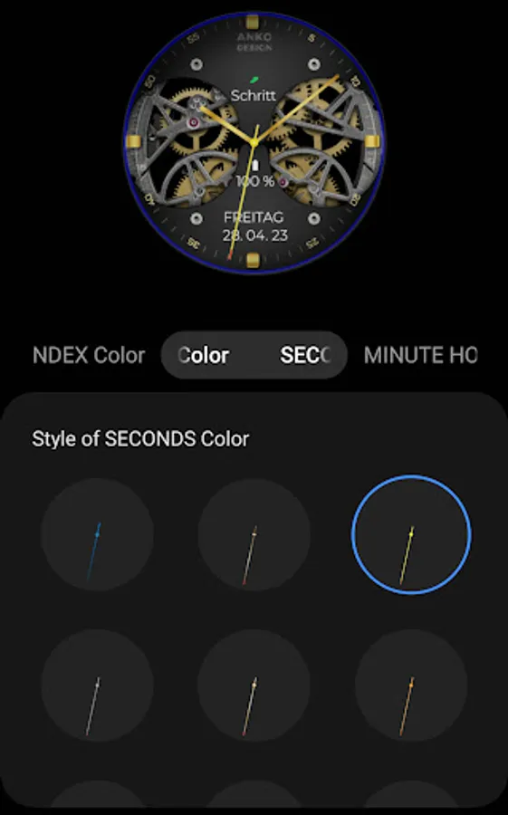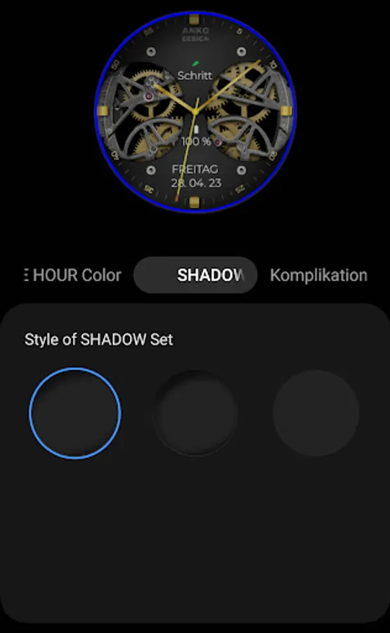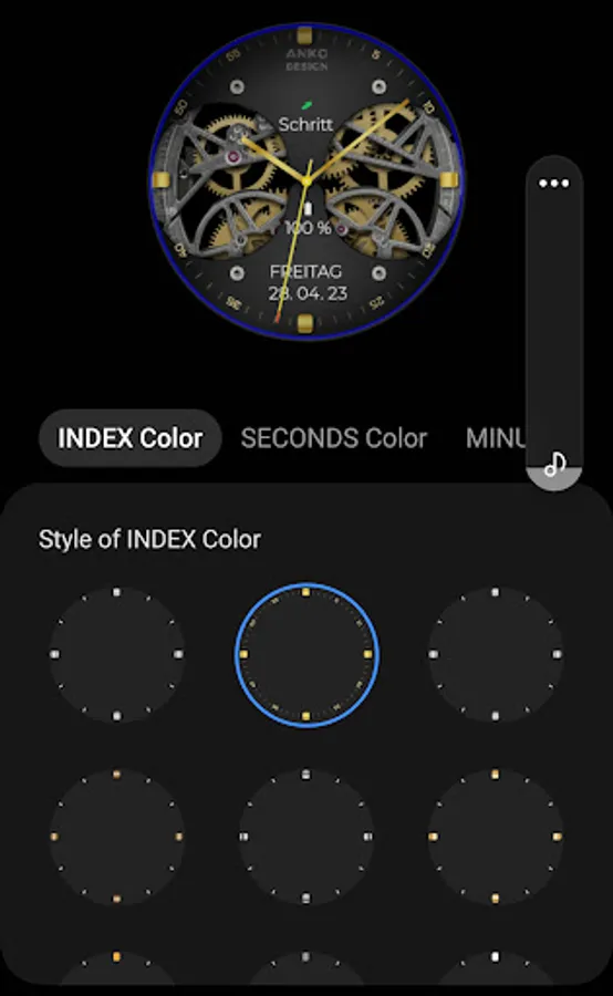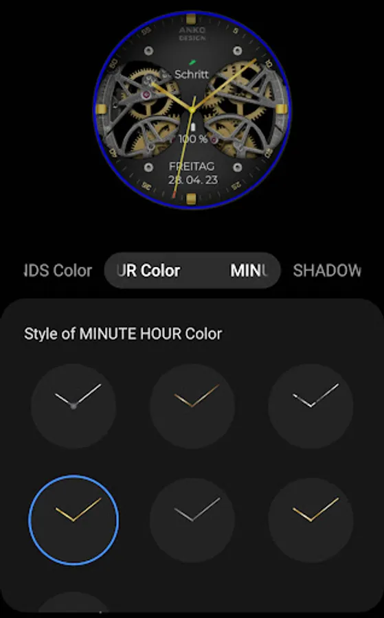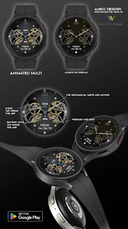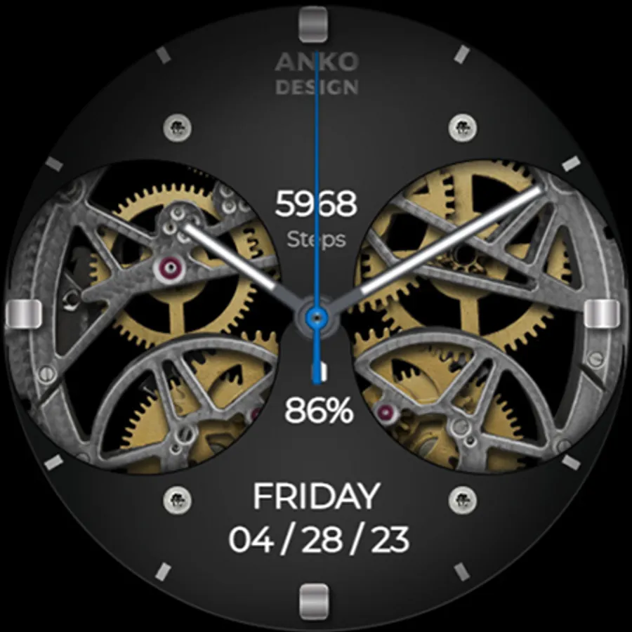 An animated watch face for Wear OS, with many customization options (index, hands, shadow, etc.).