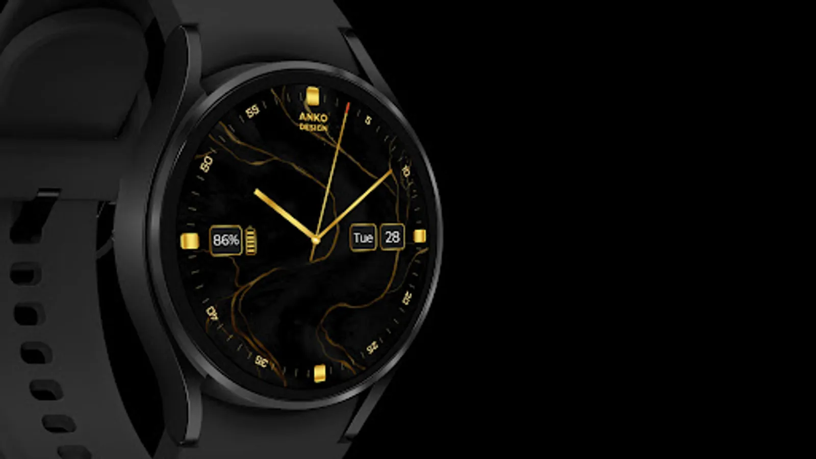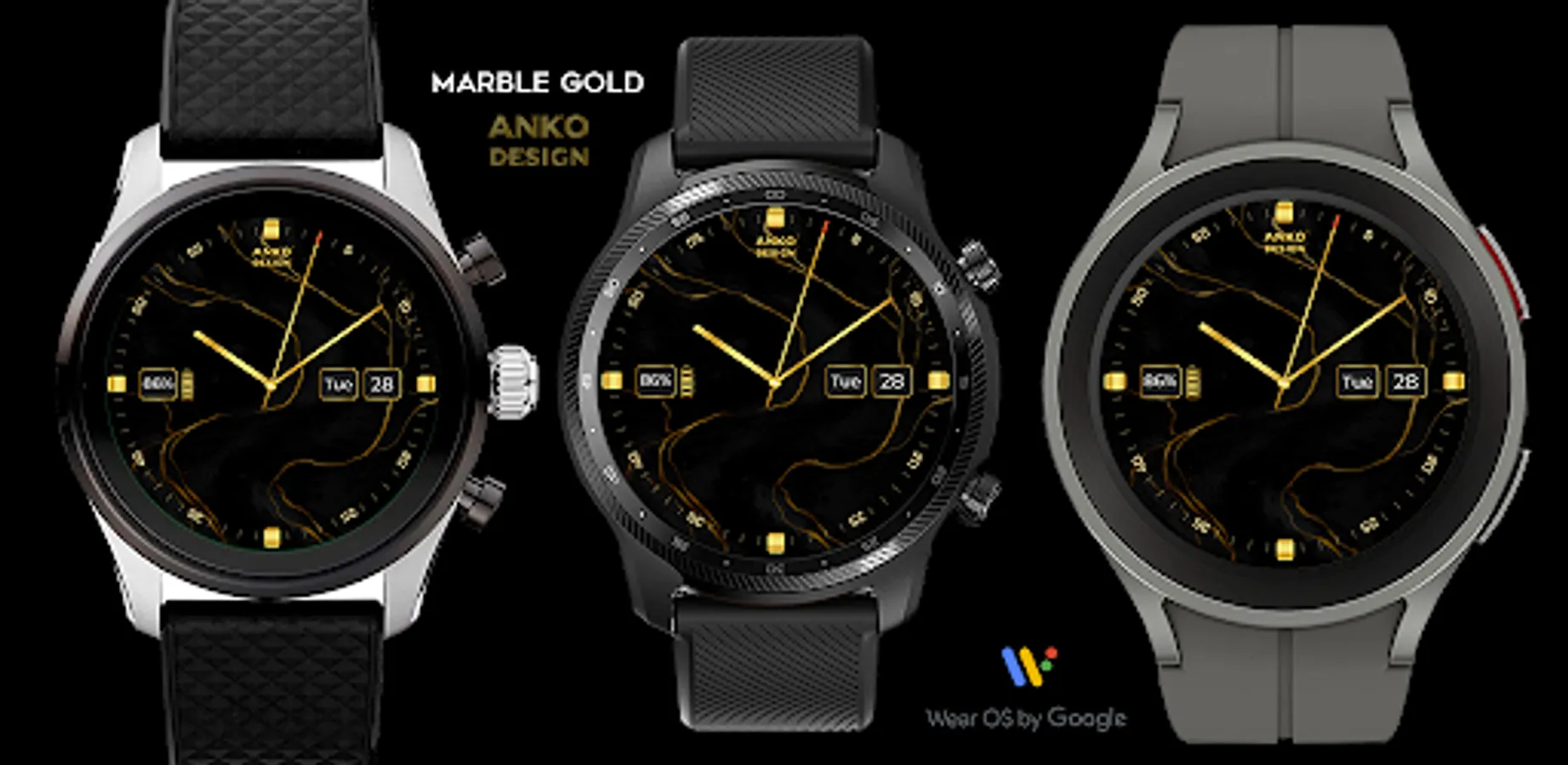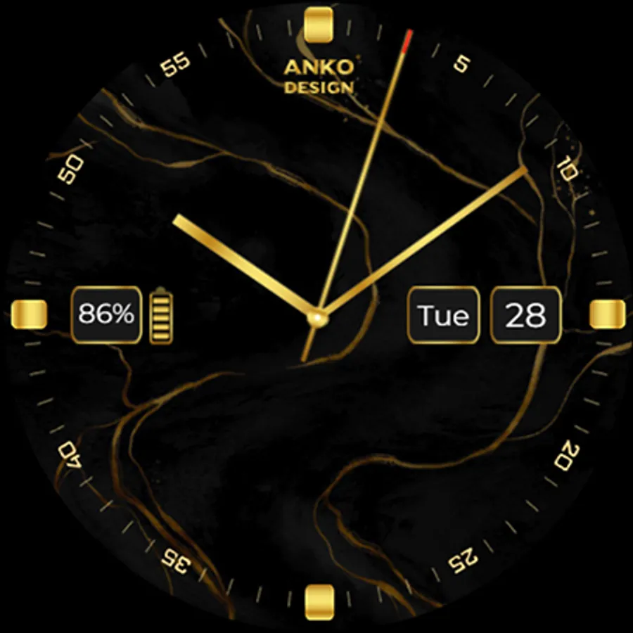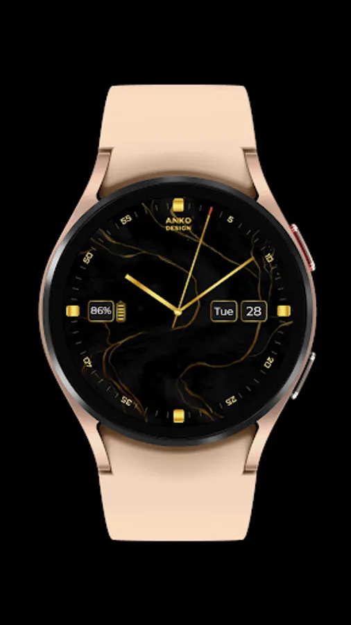 The AnKo Design Marble Gold is an elegant and minimalist watch face for Wear OS with only two necessary features: