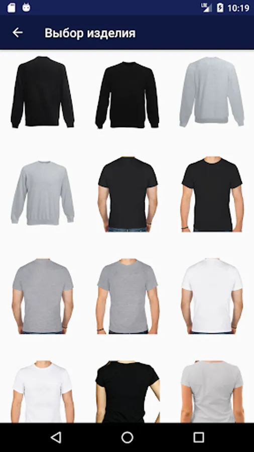 1. Click on the icon - T-shirts and select the product model (men's, women's; raglan, apron).