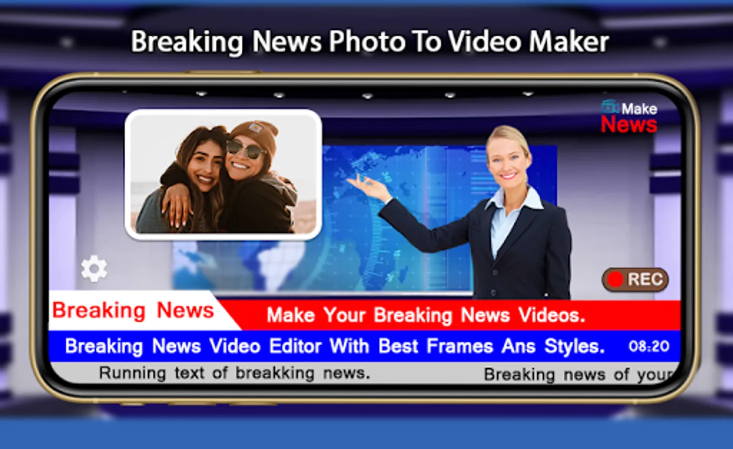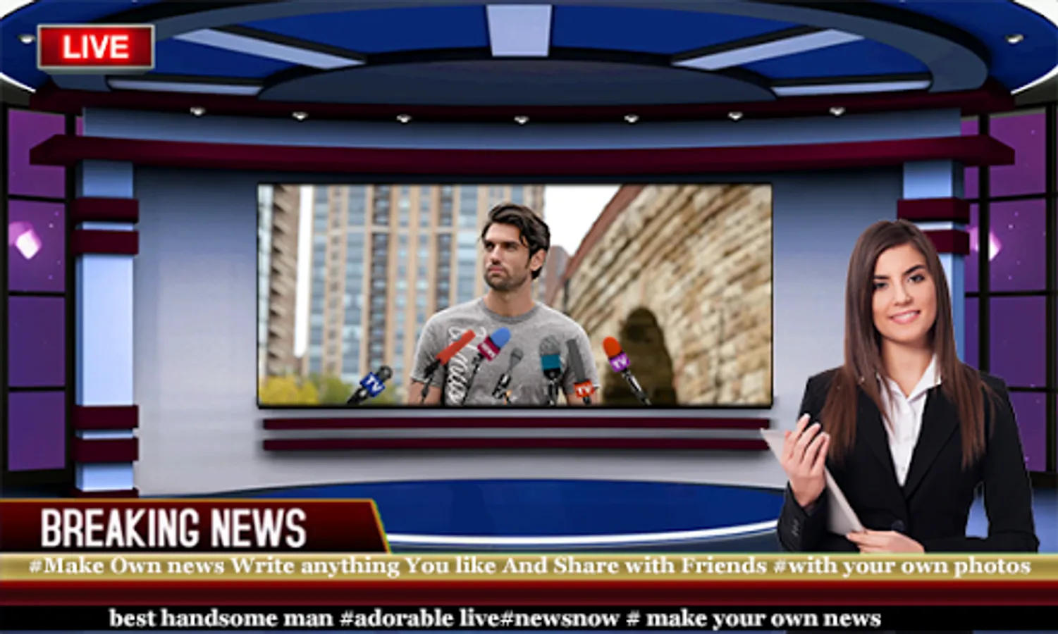 Breaking News Video Maker, you can make videos that are funny and unique and useful in the style of a tv reporter who is reading news on television with very easy use such
