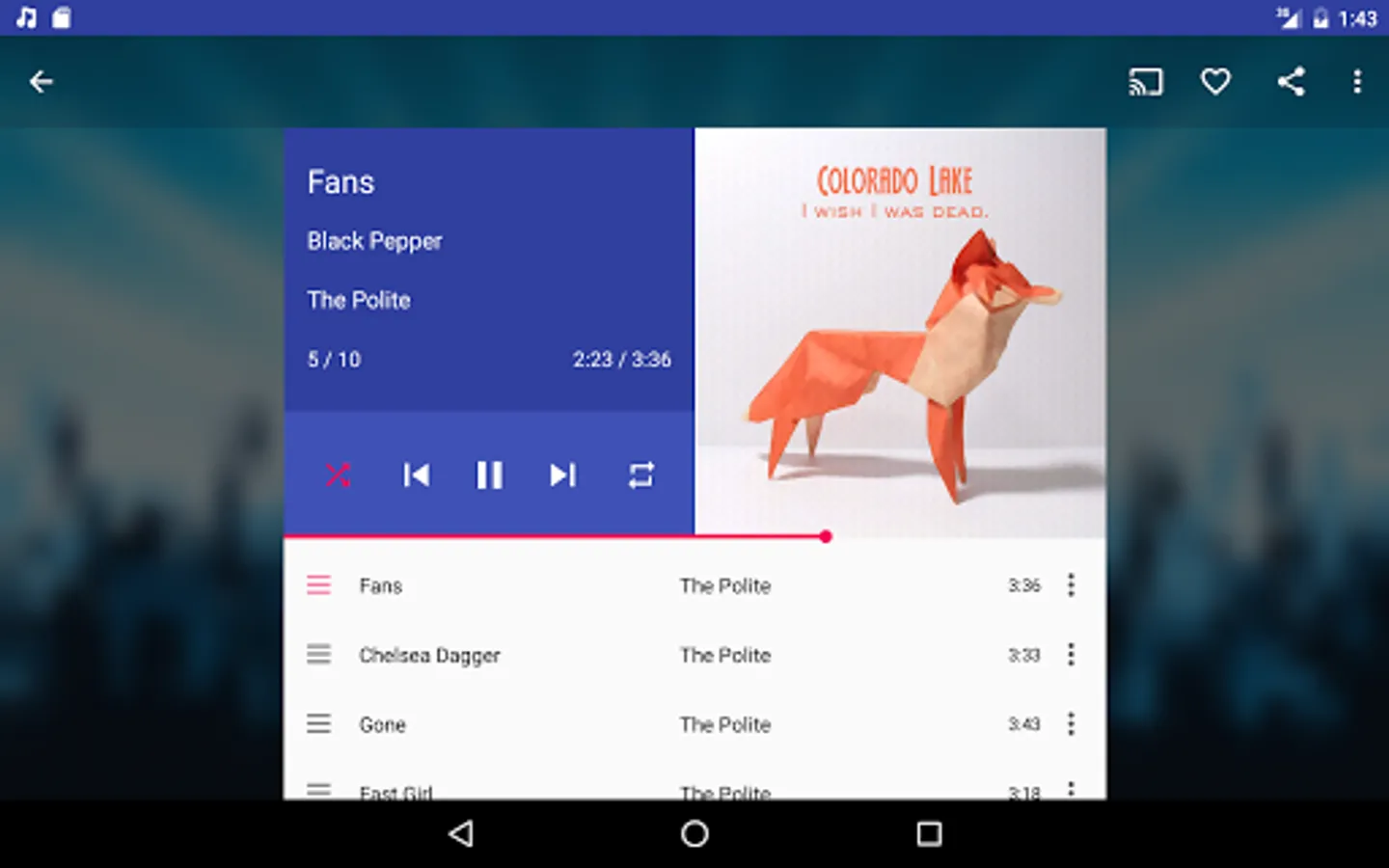 Shuttle Music Player contains everything you need in a music player... and a little bit more. It is the music player of choice for your Android device!