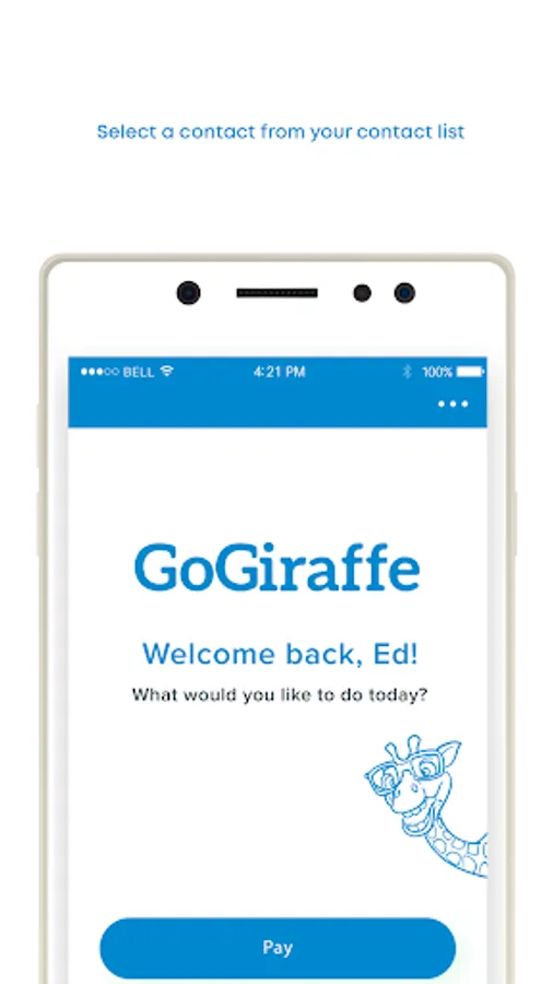 GoGiraffe is an easy to use, secure person-to-person payment application that allows you to pay any contact in your phone or tablet. The App also allows you to easily do NuCard card-to-card transfers. Purchase data, airtime and other value-added products and services.