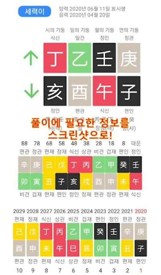Daewoon by 10 years, Sewoon by 1 year, Wolun by month