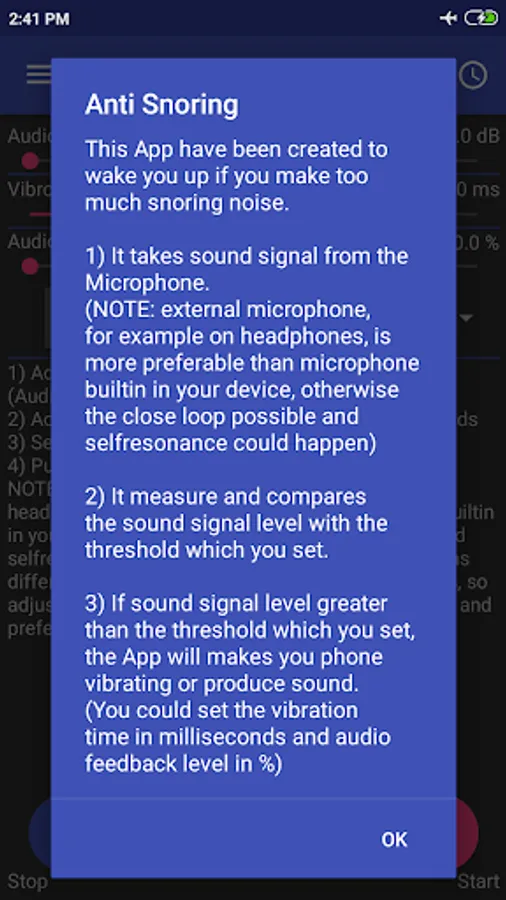 This Anti Snoring App have been created to wake you up if you make too much snoring noise.