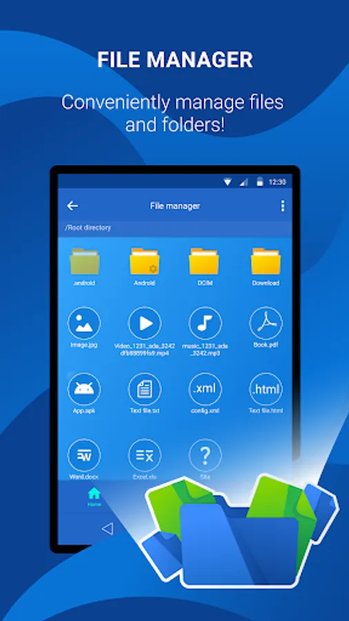 With use of our File manager you will easily manage files and folders on your device. Also you can use it to transfer files between your devices and PC or Mac. It helps you keep files organized, quickly share them and use your phone’s space wisely.