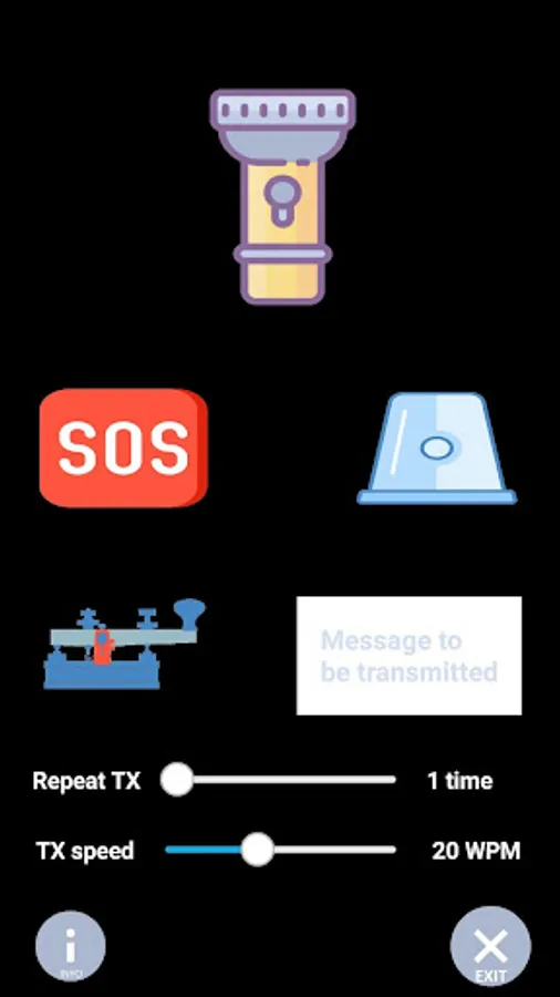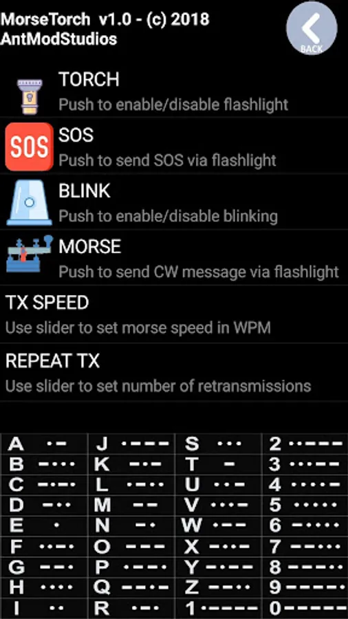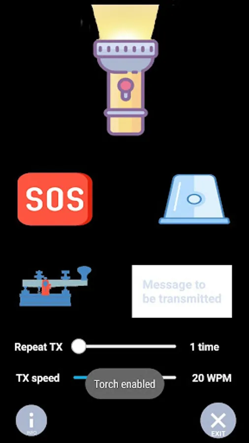 - Morse code flashlight with variable speed (in WPM) and number of retransmissions