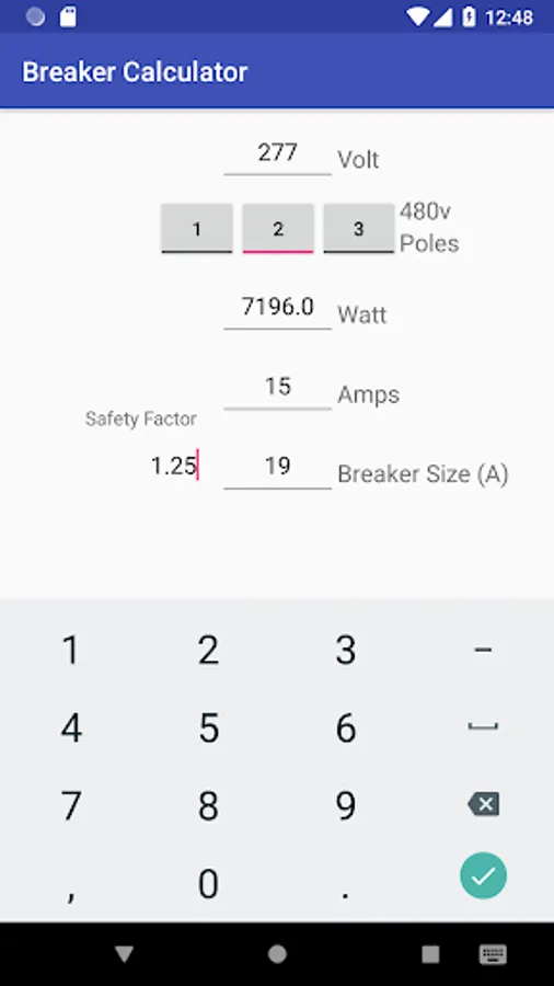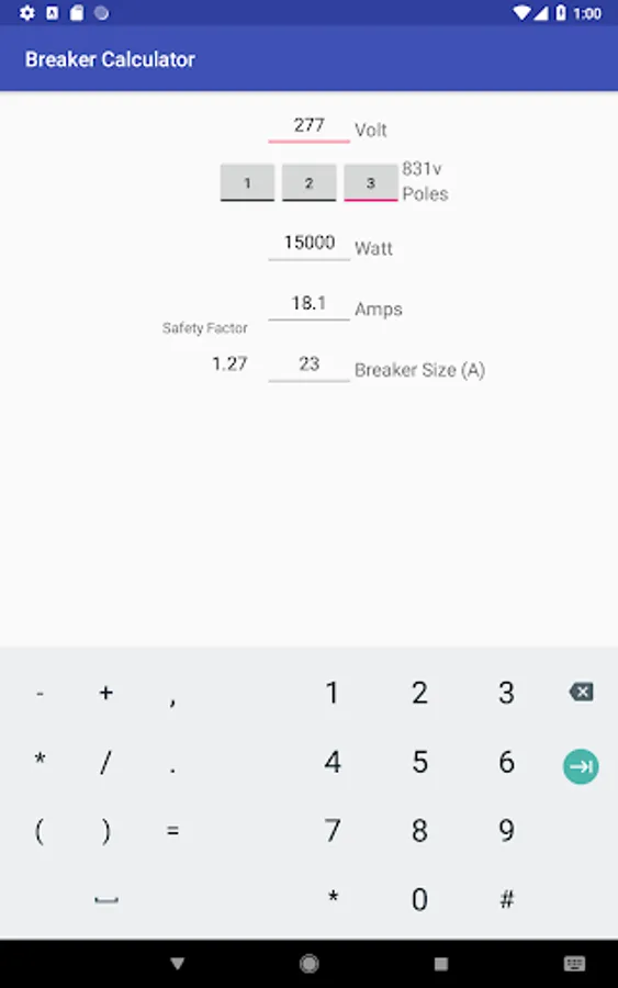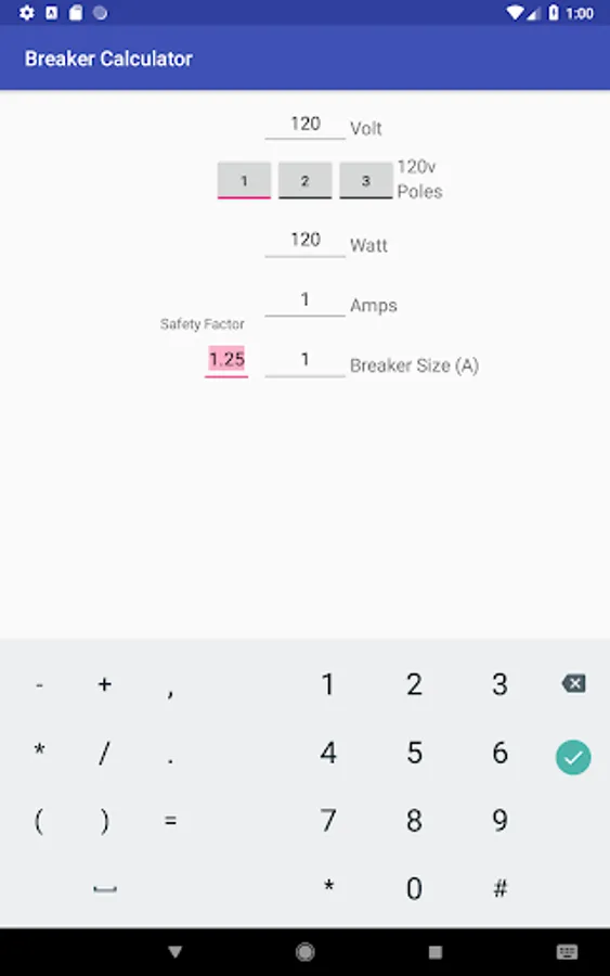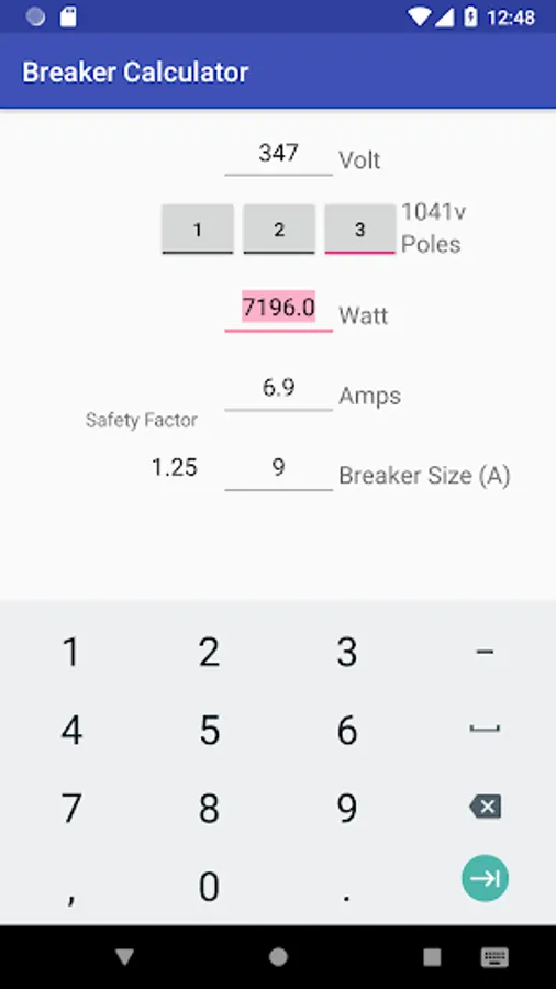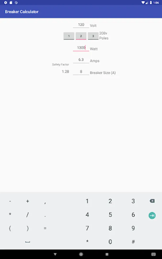 Amps are calculated and ideal breaker amp size chosen.