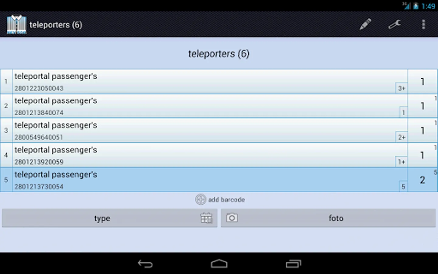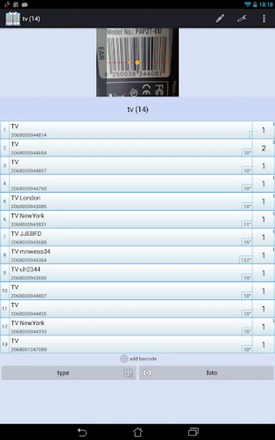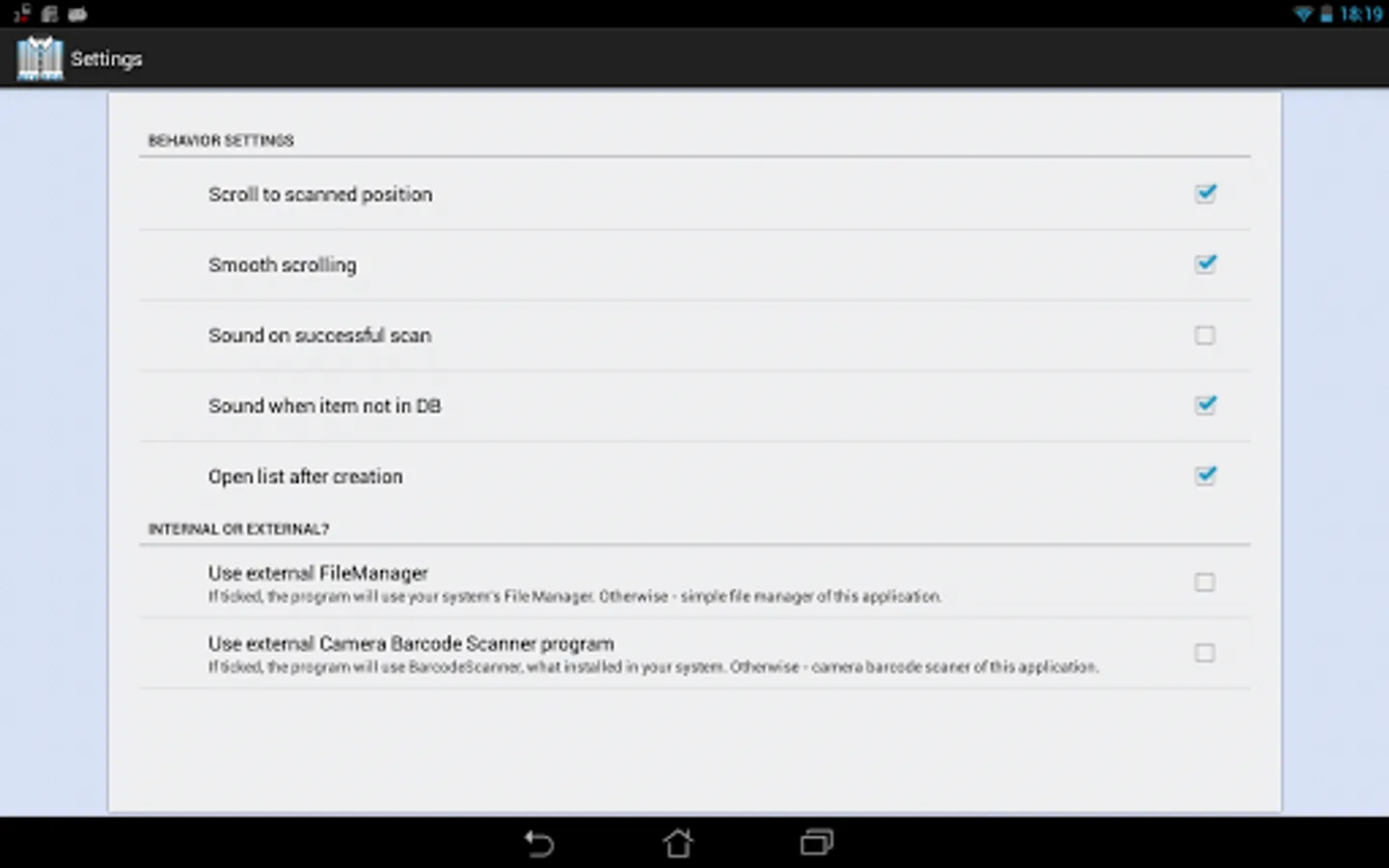 The program has a built-in ability to scan bar codes. It was implement with help of the zxing library. Using the scan function is licensed under the Apache License 2.0. If you wish to scan with help of the external program (eg Barcode Scanner ), you can enable this feature in the settings.