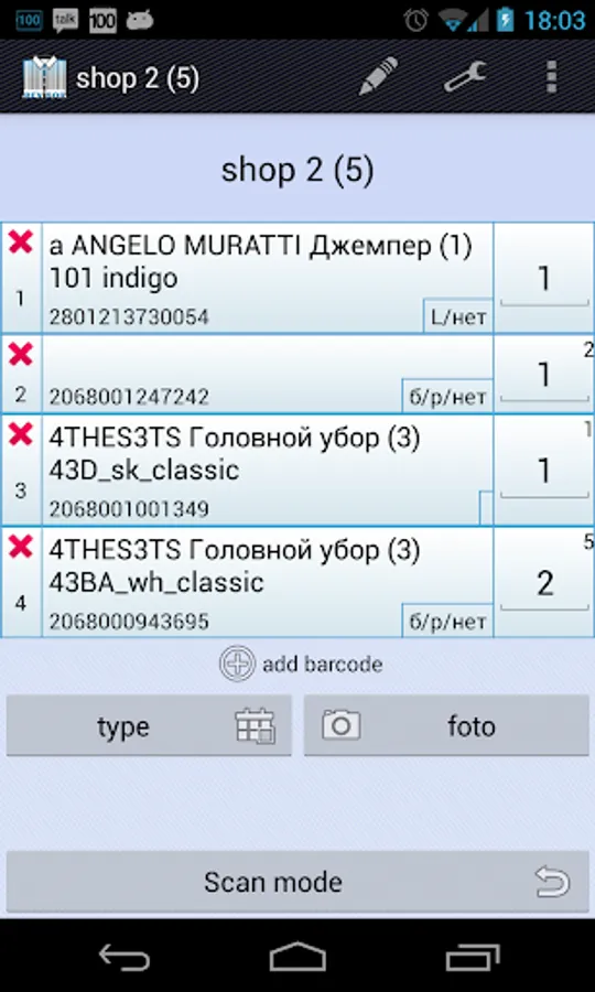 Application for auditing (revision) warehouses and retail outlets (works with hardware barcode scanners, helps to save a lot of money on special business handle computers, easy to use for most employees).