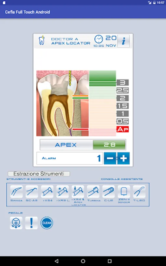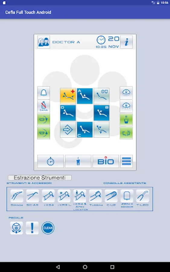 This simple tool shows all of the touch screen control panel features, from controls for the movement of the chair and the settings of instruments to the parameters of hygiene systems and much more. Discover the many possibilities of the console and intuitive interface.