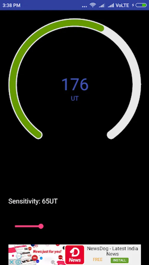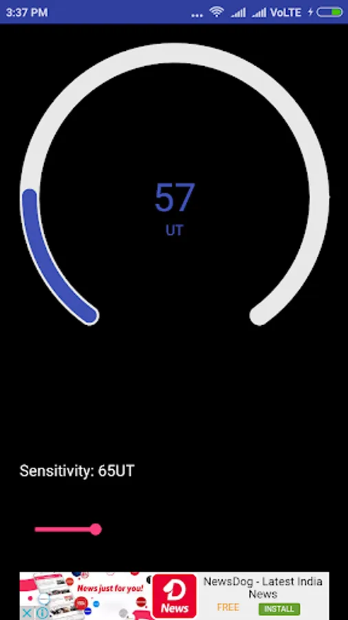 Just open the APP. App will start scanning magnetic field and metal. Magnetic strength will show in Progressbar in Unit microtesla. Default sensitivity is set for 65UT, means a vibration will occur if magnetic strength go above 65. You can change the sensitivity just by sliding sensitivity slider.
