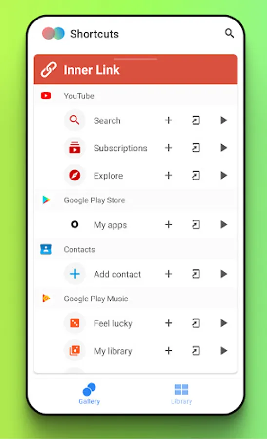 Create a shortcut inside the specified app