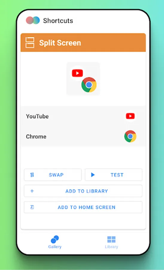 Create app shortcuts on the homescreen to launch two apps directly in split screen mode.