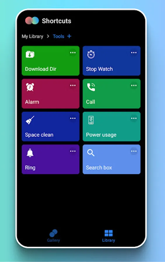 Create shortcuts to commonly used tools (Search box,Download Dir,Stop Watch,Alarm,Call,Space clean,Voice Recorder,Power usage,Ring)