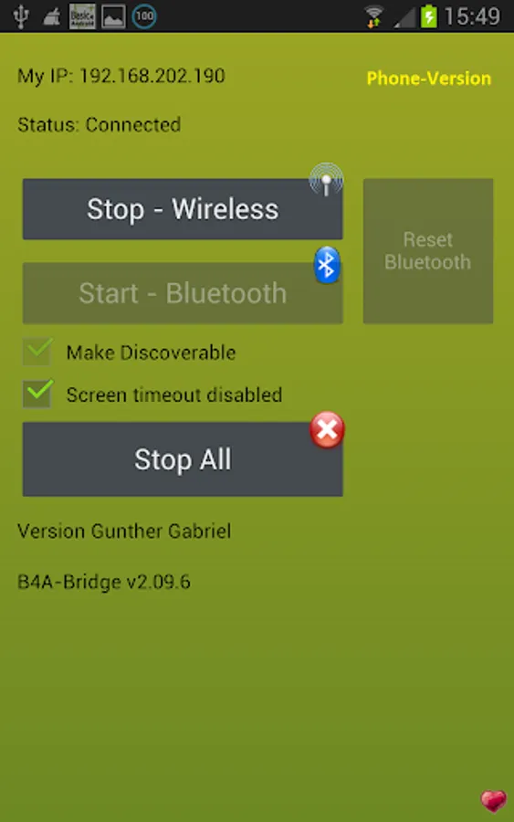 B4A-Bridge Plus Prime is a tool for Basic4android developers which allows you to connect the IDE to physical devices over the local network or a Bluetooth connection.