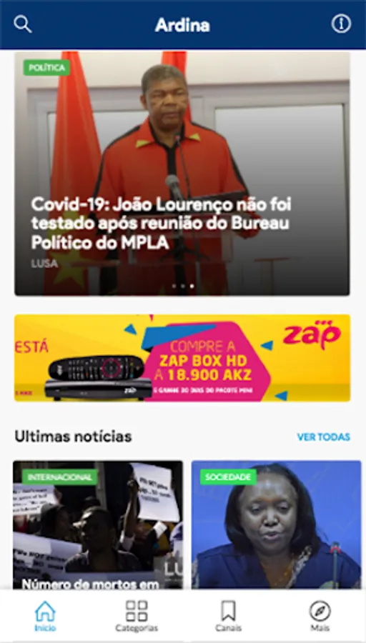 Ardina is the best news aggregator that brings together the best national and international news publishers in the Angolan market.