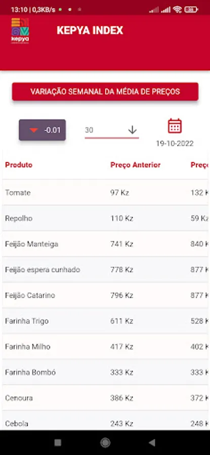 Every week the Kepya Index evaluates the prices of the most sold products in the main markets in Angola. By registering with Kepya, you can check the evolution of market prices and make the best decisions