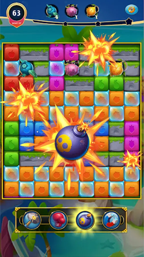 Fruit Blast have mania gameplay that will require strategic thinking to solve the level puzzle and make the Cubes blast.