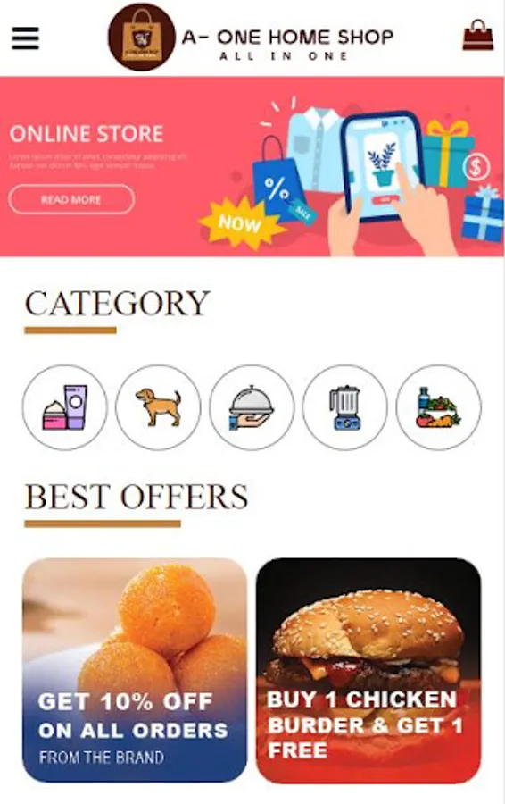 A-ONE HOME SHOP is eCommerce App for all your fast food & Other needs.