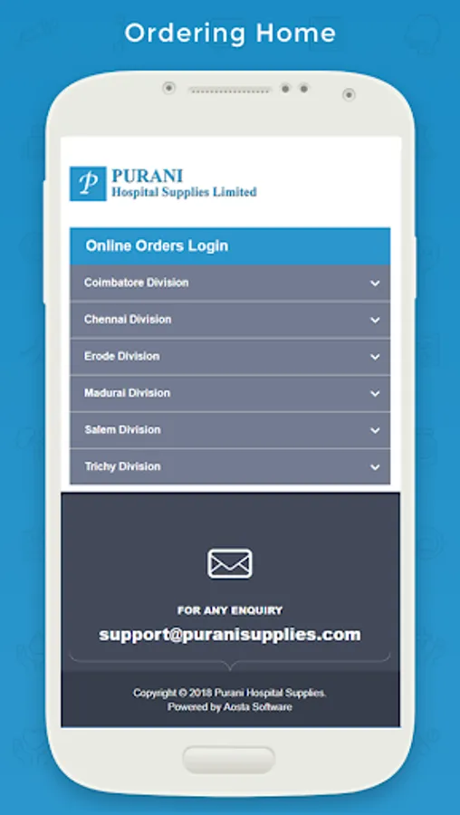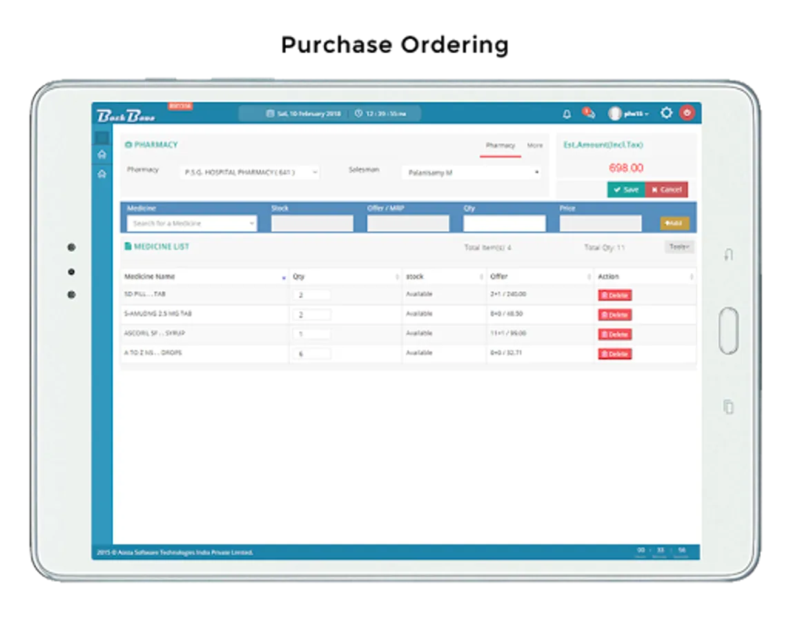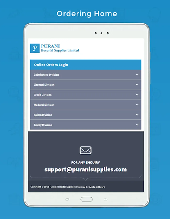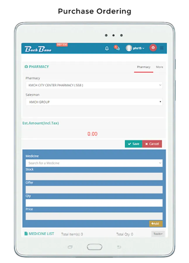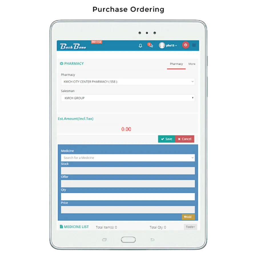 Purani Hospital Supplies online ordering system from Retails Pharmacy and PHS Salesman and Manufacturer representative Sales/PO reports