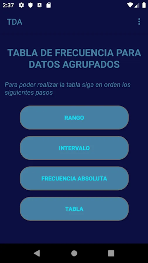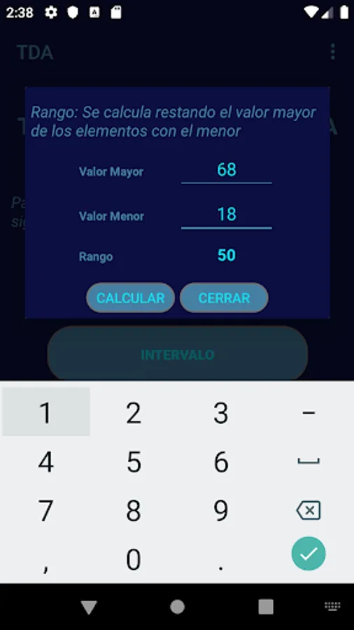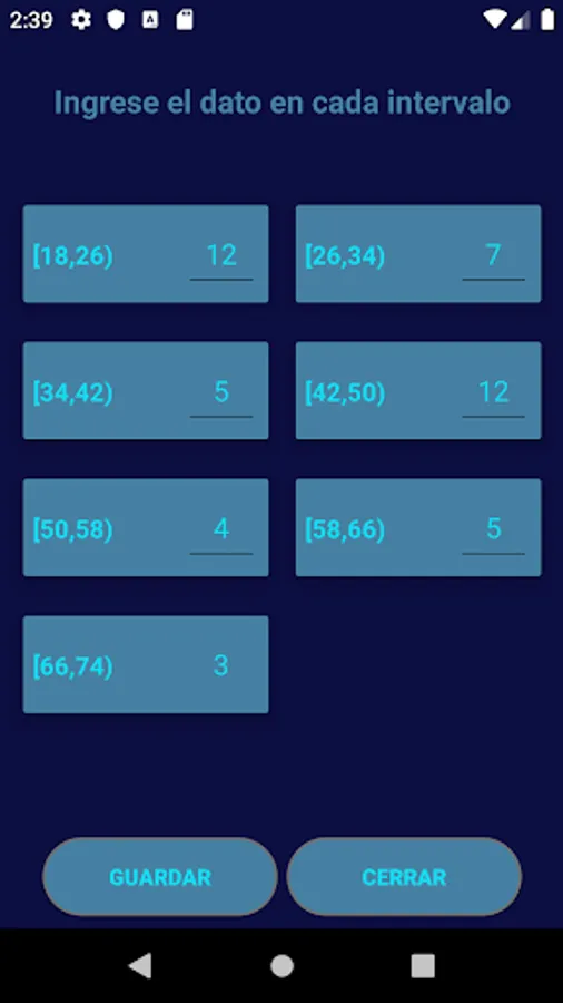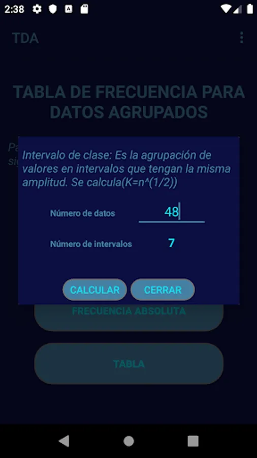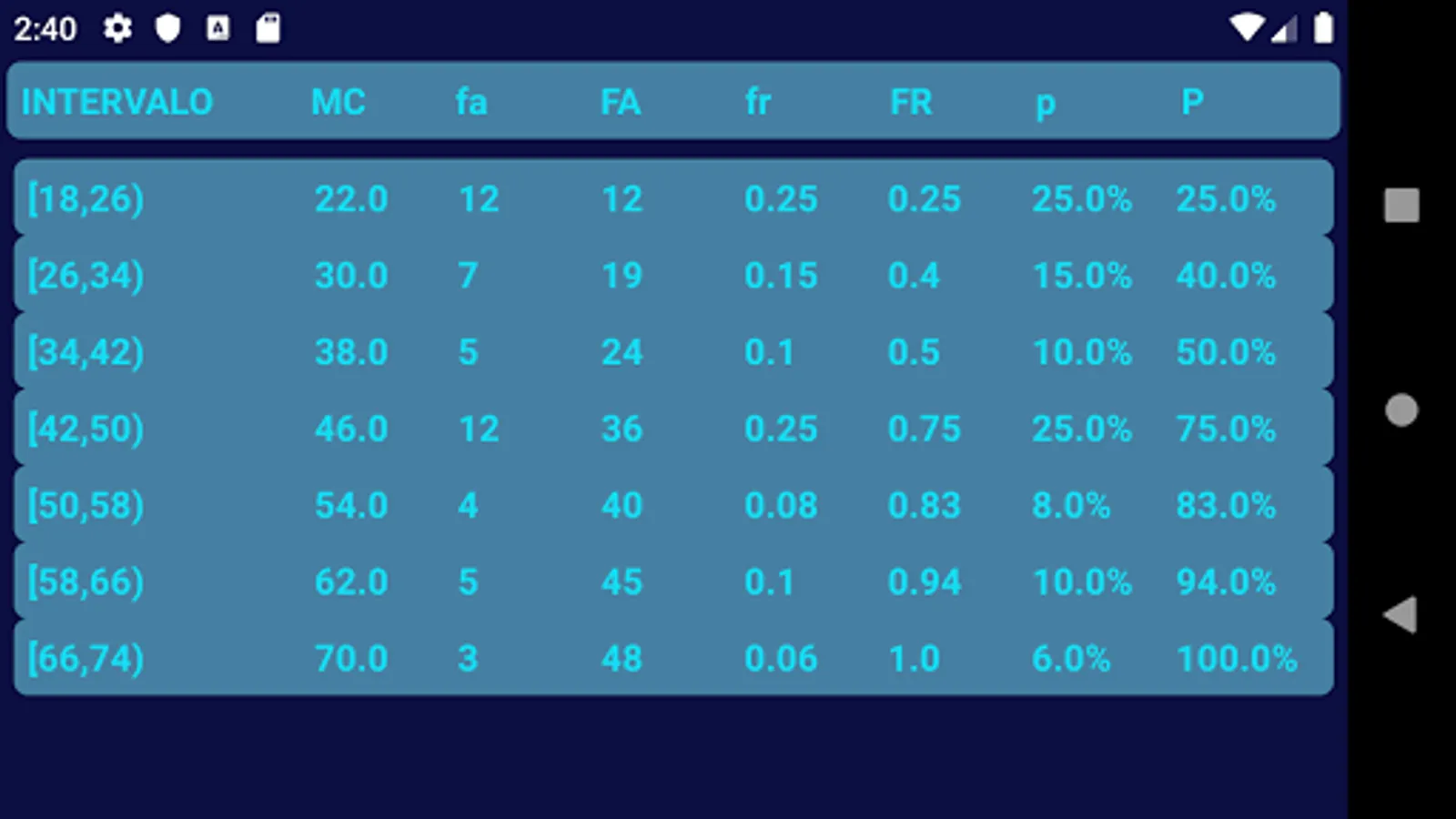 It consists in obtaining the frequency table for grouped data, which will allow you to check the results you make on paper with the result of the application.
