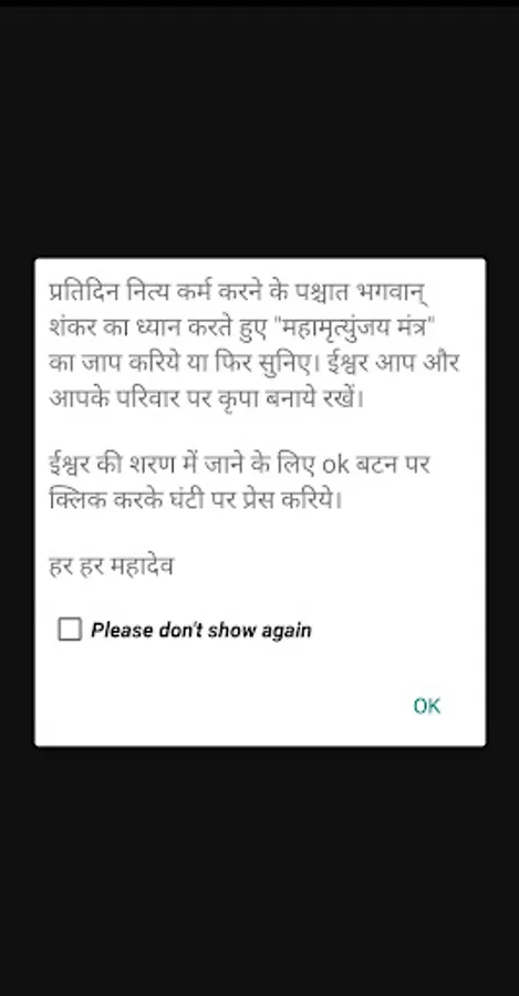 हमारे इस एप्लीकेशन में आपको लगभग 45 मिनट का 108 बार किया हुआ जाप मिलेगा। इसे आप कहीं भी सुन सकते हैं। भगवान् शंकर के इस मंत्र का सही उच्चारण होना आवश्यक है। आप इस एप्लीकेशन के माध्यम से उच्चारण करना भी सीख जायेंगे। भगवान् शिव आप और आपके परिवार पर कृपा बनाये रखें।