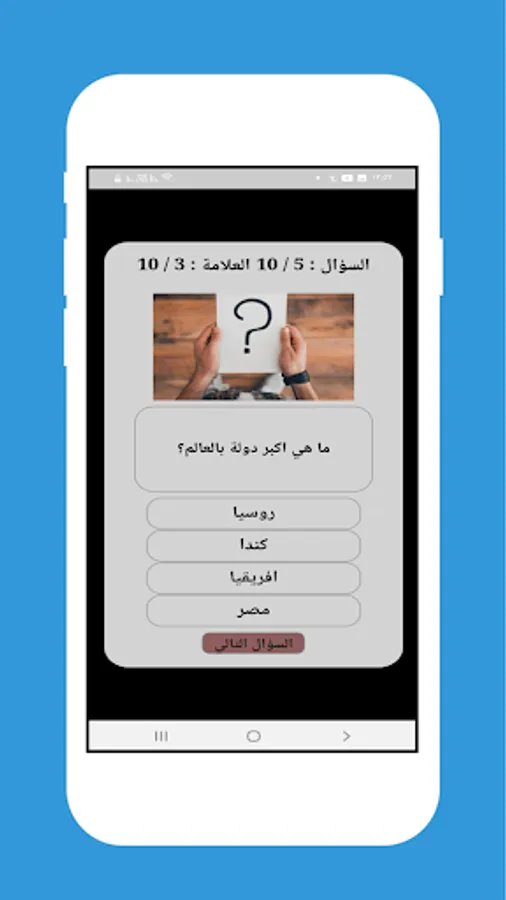 Question and Answer application - Activate your mind enables you to increase your knowledge in various general cultural information contains many diverse areas and each field of knowledge contains several levels, including easy questions and answers and others difficult questions and answers and general information in addition to that the application contains 10 questions.