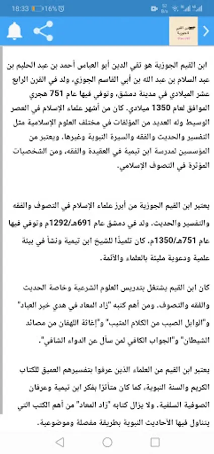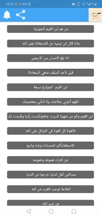 Moreover, the application is characterized by focusing on a good user experience, as it provides easy and convenient means to take advantage of the available content. Thanks to these features, users can enjoy an enjoyable and useful user experience with the "Sayings and Masterpieces of Ibn al-Qayyim al-Jawzi" application.