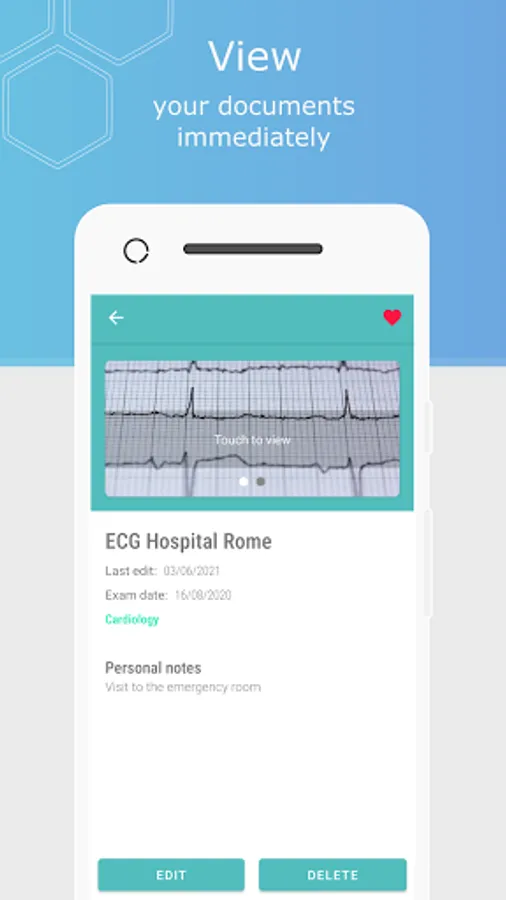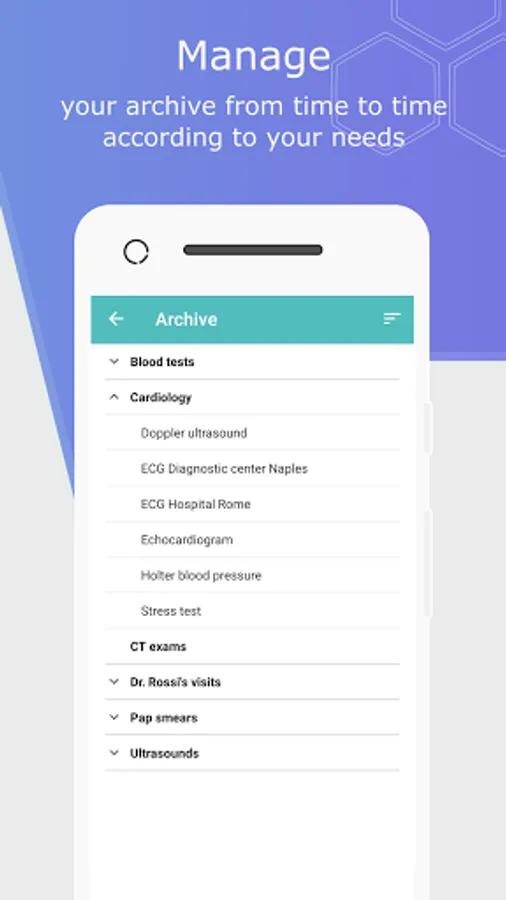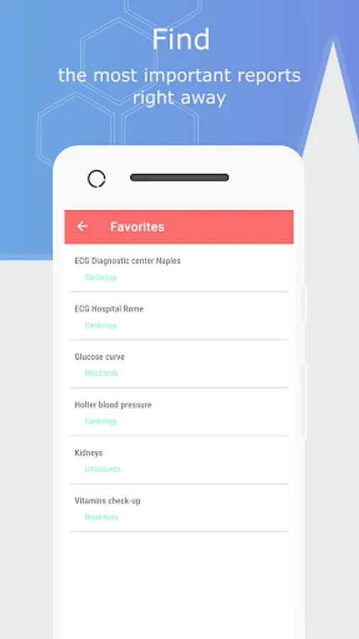 Green pass, MRI result, CT scan, X-ray, ultrasound, nasopharyngeal swab, serological test, blood test, electrocardiogram, generic reports: no more paperwork, no more mess, all in one place just a click away!