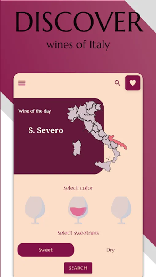 Ready for a journey to discover the great Italian wine tradition? Sommelier will be your trusted travel companion: this application will guide you in what will be a tasting journey rich in culture but at the same time simple, effective, essential.