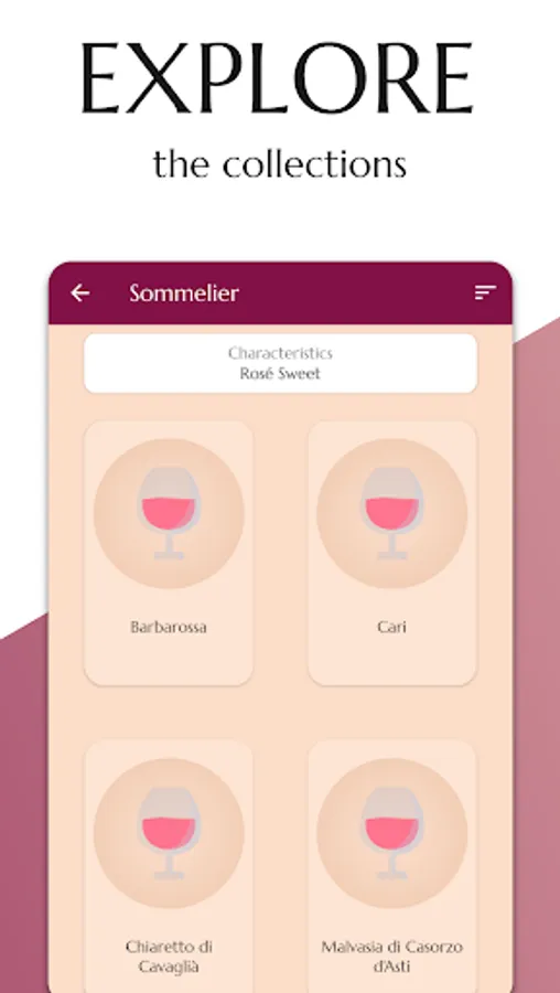 Whether you are a novice or an expert, this app will help you learn more about the main Italian wines through collections appropriately filtered according to your preferences.