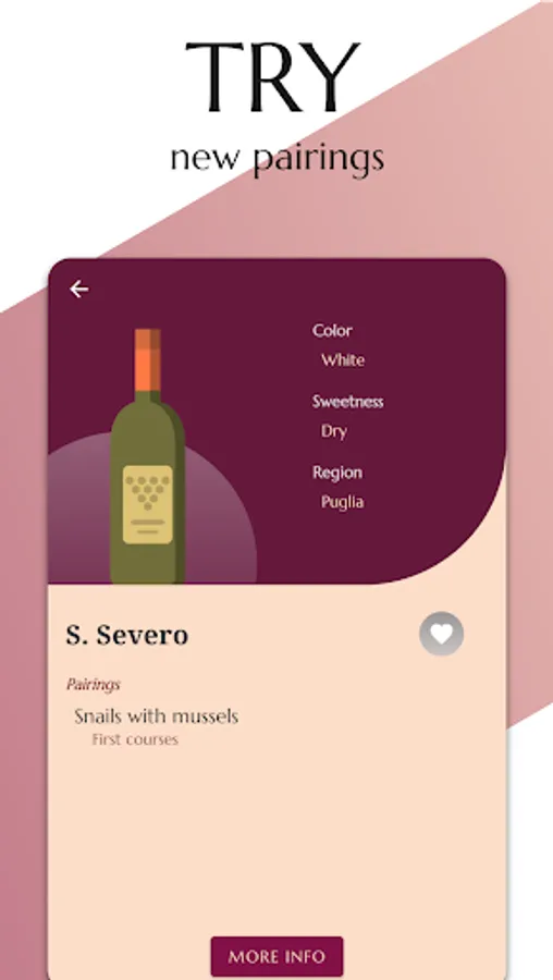 Are you invited to a dinner, would you like to bring a wine but you are not really a connoisseur? No fear! Sommelier has at least one pairing available for each wine present in his entire and varied collection! But, if this is not enough, the app provides a description of its main characteristics for each wine together with a direct connection to the internet so that in the blink of an eye you can know everything you need!