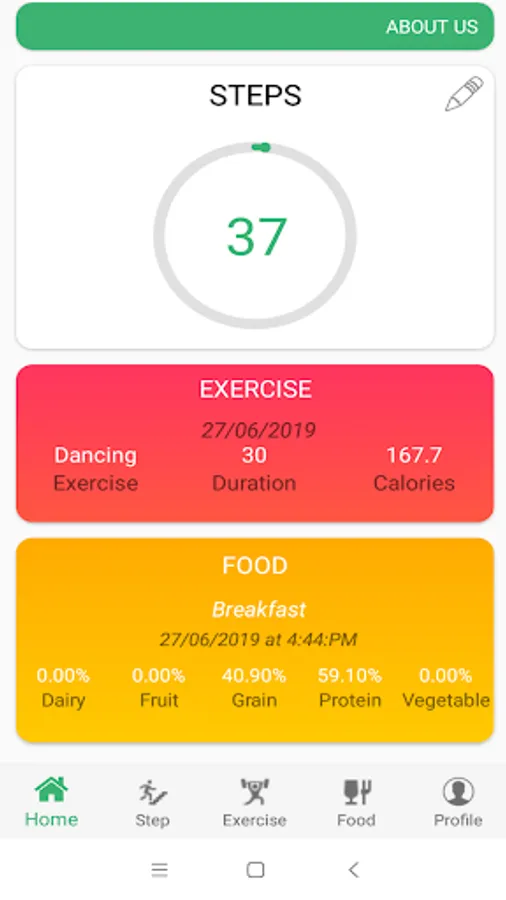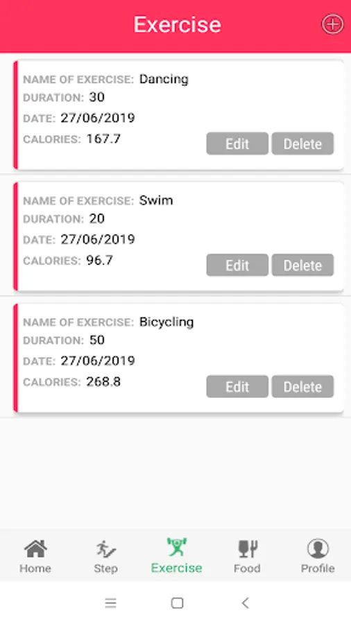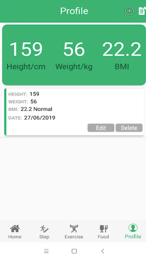 You can key in your exercise and food intake. The app will also gather the steps taken if you wish to do so.
